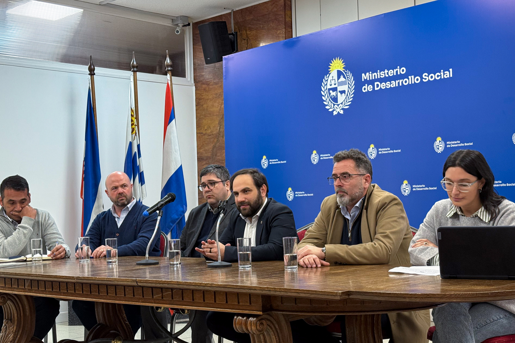 El evento comenzó con una mesa de autoridades que reconocieron las virtudes de esta donación, la buena intención de los productores nacionales que las realizaron y su aporte a distintas personas en situaciones de vulnerabilidad social. Esta mesa estuvo integrada por el ministro de Desarrollo Social, Gonzalo Civila, Micaela Melgar, directora del Instituto Nacional de Alimentación; Matías Carámbula, subsecretario de Ganadería, Agricultura y Pesca; Alberto Fumero, director general de servicios sociales del Ministerio de Defensa Nacional; Jorge Camargo, subdirector del Instituto Nacional de Rehabilitación (INR) y Fernando Mietto, presidente de ANSEPA (Asociación Nacional de Semilleristas de Papa del Uruguay) en representación de las gremiales de productores.