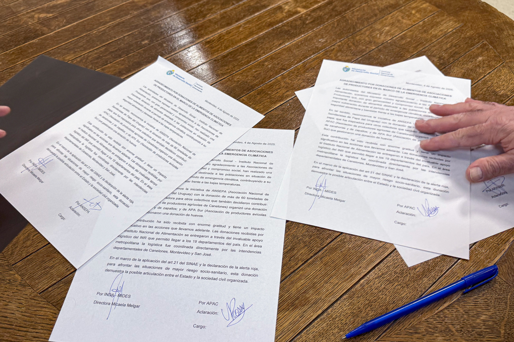En un acto realizado en el Ministerio de Desarrollo Social el lunes 4 de agosto de 2025, autoridades estatales y referentes gremiales firmaron un agradecimiento formal por los alimentos donados durante la alerta roja por frío extremo. Micaela Melgar, directora del Instituto Nacional de Alimentación, destacó que lograron “llevar los alimentos a todo el país”.